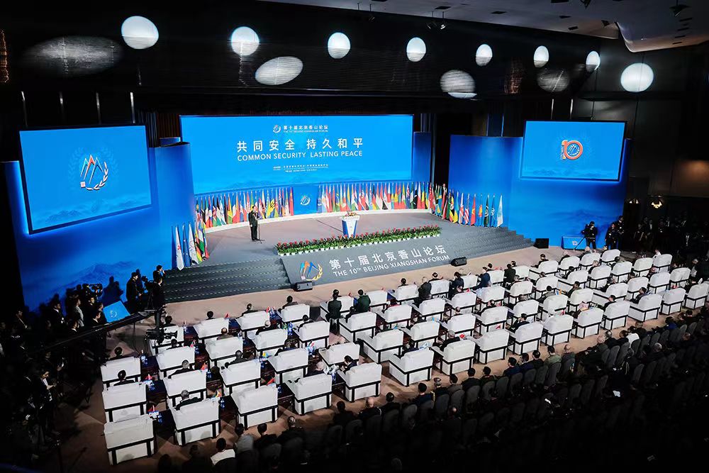 由中国军事科学学会、中国国际战略学会共同主办的第十届北京香山论坛2023年10月29-31日在北京国际会议中心举行,中国军事科学院院长、中国军事科学学会会长杨学军上将主持开幕式,中央军委副主席张又侠上将出席第十届北京香山论坛并作主旨发言。本届论坛共有99个官方代表团、19国国防部长、14国军队总长(国防军司令)、6个国际组织代表以及专家学者和各国观察员等1800余名嘉宾出席,参会代表数量和层级创历史新高。