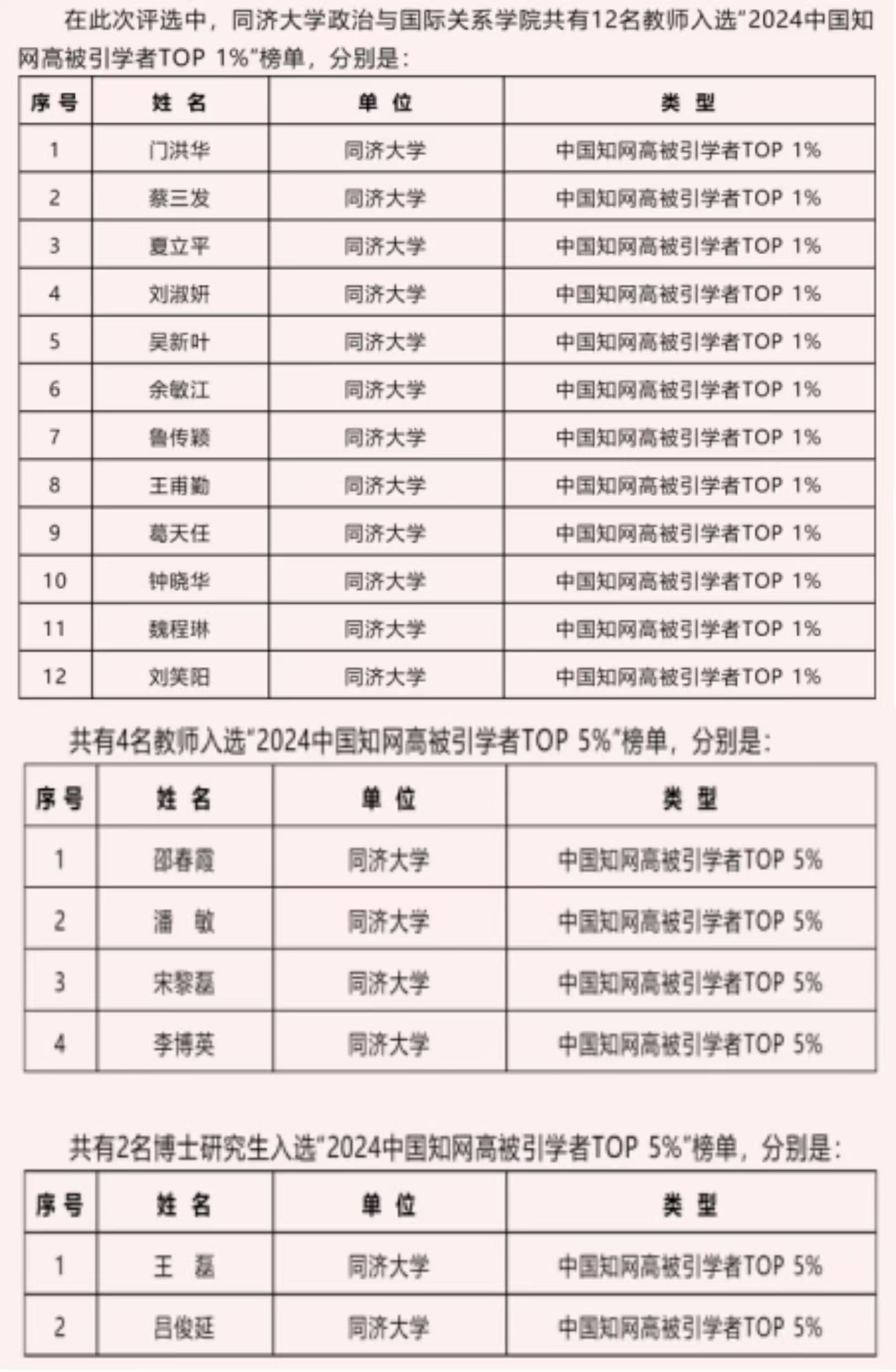 1 | 门洪华 | 同济大学 | 中国知网高被引学者TOP 1% |