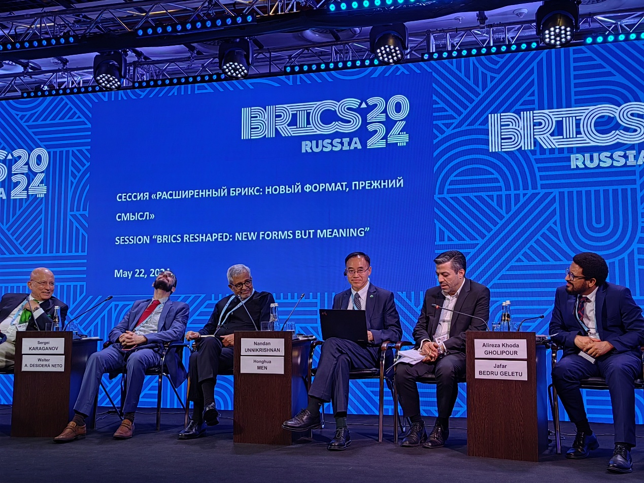 把握世界脉搏,扣准全球南方。2024年5月22-24日,第十六届金砖国家学术论坛在俄罗斯莫斯科举行,中联部研究室主任、金砖国家智库合作中方理事会秘书长金鑫博士率团与会并发表基调演讲。教育部长江学者特聘教授、yl6809永利官网集团中国战略研究院/yl6809永利集团院长门洪华教授应邀出席论坛并在主旨演讲后的“金砖重塑的新形式”第一议题代表中方作《稳步推进金砖重塑的原则与路径》的交流发言。