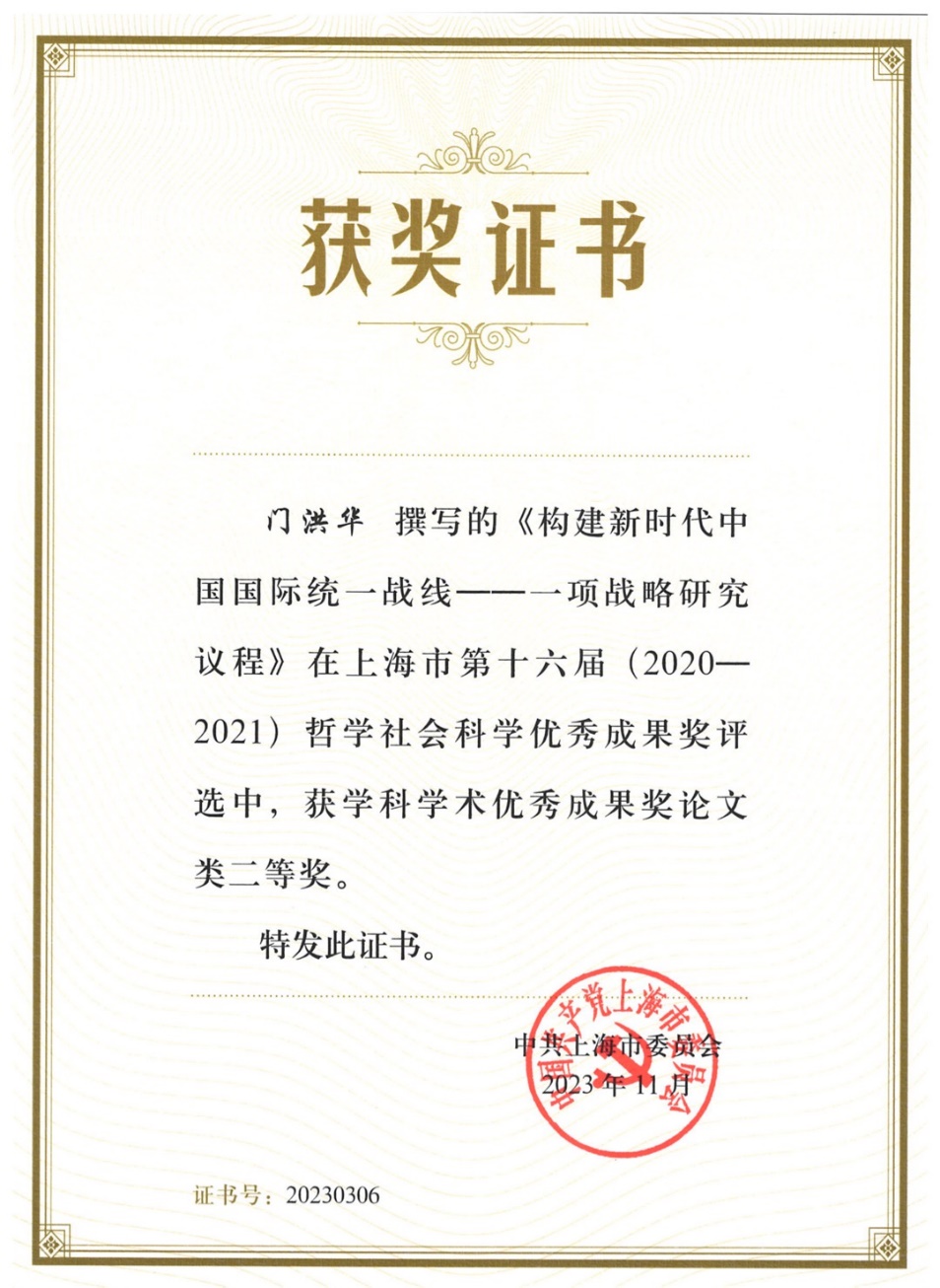 在学科建设方面,门洪华院长获评“上海市优秀社会科学学会工作者”,相关证书于2025年2月底3月初陆续发放到各研究学会。2024年10月12日,上海市社会科学界联合会公布2021-2023年度上海市优秀社会科学学会、优秀民办社会科学研究机构、优秀社会科学学会工作者、特色活动及品牌活动(“三优一特一品牌”)的评审结果,上海市国际关系学会副会长、教育部长江学者特聘教授、yl6809永利集团/中国战略研究院院长门洪华教授获评上海市优秀社会科学学会工作者。“三优一特一品牌”评选是上海市社会科学界联合会为推动本市社会科学学会的培育和建设,提高管理水平,充分发挥其在社会主义经济建设、政治建设、文化建设、社会建设、生态文明建设中的各项功能所开展的品牌评审活动,评选每三年举行一次。据悉,本次评审自2024年7月开始申报,经初审、互评和终评并经社联党组审核通过,最终正式公布上海市优秀社会科学学会工作者160名。