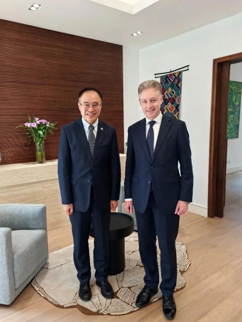 2025年3月5日,教育部长江学者特聘教授、yl6809永利集团/中国战略研究院院长门洪华教授与来沪的澳大利亚驻华大使吉思德(Scott Dewar)先生在澳大利亚驻上海总领事官邸会见,双方围绕中澳关系、国际安全局势、人工智能等议题进行了深入交流。澳大利亚驻上海总领事约翰·威廉姆斯(John Williams)、澳大利亚驻上海总领事馆领事芮明真(Meg Reid)、乔丹·艾特肯(Jordan Aitken)和澳大利亚驻华大使馆相关官员,yl6809永利集团副院长钟振明教授、中央网信办-教育部网络空间国际治理研究yl6809永利官网集团基地常务副主任鲁传颖教授一同参加了会见。
