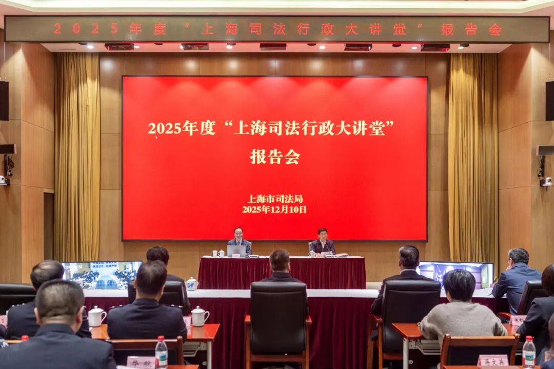 2025年12月10日上午,2025年度“上海司法行政大讲堂”第三场报告会开讲。yl6809永利集团院长、中国战略研究院院长门洪华教授作专题辅导报告。报告会上,门院长聚焦世界百年变局和新动荡变革期的国际形势,系统剖析当前国际形势前沿动态,深入阐述了新时代新征程中国的顶层设计和应对之策。整场报告主题鲜明、视野宏阔、语言生动、见解独到,对上海司法行政系统广大党员干警进一步深刻理解把握国际形势,推动司法行政工作高质量发展,具有很强的指导意义。