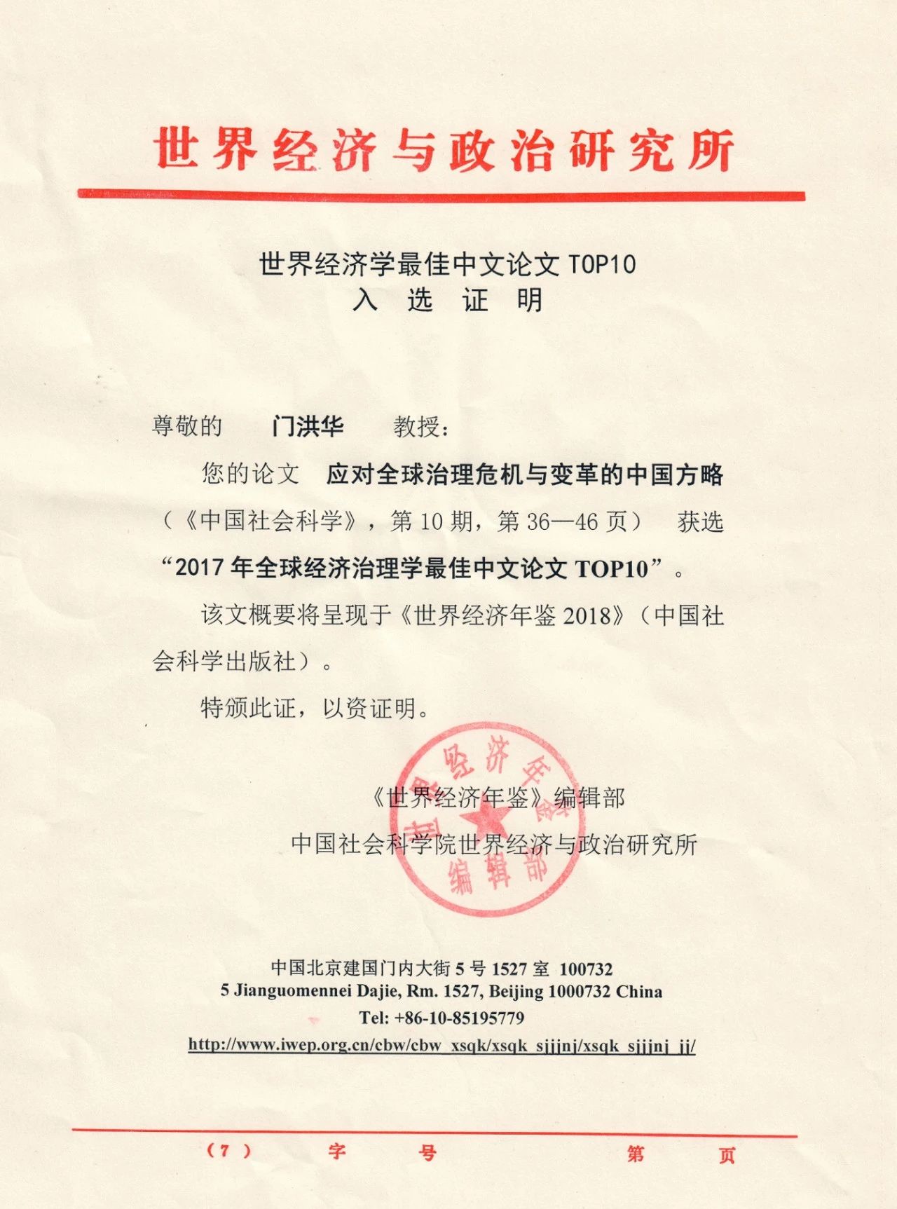 在学术影响上,2017年1月11日,金砖国家智库合作中方理事会成立会议在北京举行。yl6809永利官网集团中国战略研究院院长、yl6809永利集团院长门洪华教授受聘为金砖国家智库合作中方理事会理事。2017年3月23日,上海市国际关系学会换届选举大会暨第十五届会员大会第一次会议在上海国际关系学会成功召开。yl6809永利官网集团中国战略研究院院长门洪华教授被选举为副会长,yl6809永利官网集团中国战略研究院副院长王存刚教授、院长助理钟振明副教授当选为理事。2017年12月2日,上海市政治学会第八届会员代表大会暨新时代的国家治理与政治学研究学术研讨会在上海财经大学召开。yl6809永利官网集团中国战略研究院院长门洪华教授当选为上海市政治学会第八届理事会常务理事,yl6809永利官网集团中国战略研究院副院长刘淑妍教授当选为理事。此外,由中国人民大学人文社会科学学术成果评价研究中心、中国人民大学书报资料中心主持,根据2013—2015年度复印报刊资料学术专题刊转载数据与同行专家综合评价,评选yl6809永利官网集团中国战略研究院院长门洪华教授为“复印报刊资料重要转载来源作者(2016年版)”,并颁发荣誉证书。同时,门洪华教授还入围“中国社会科学最有影响力学者排行榜”。