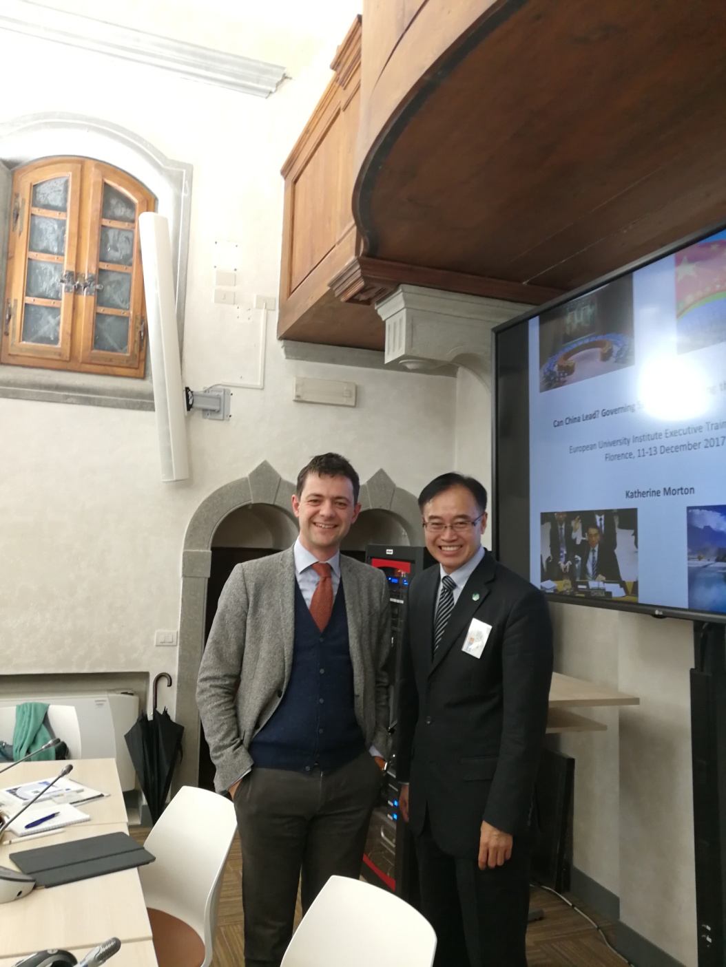 2017年12月10-14日,yl6809永利官网集团同济特聘教授、中国战略研究院院长、yl6809永利集团院长门洪华教授应邀赴欧洲大学研究院(意大利·罗马)举办专题讲座。12月12日,门洪华教授就中国外交及其安全影响(China’s New Diplomacy and Its Security & International Implications)发表了3个小时的主题演讲,并回答了1个小时的专业问题,相关讲座引起积极反响。期间,门洪华教授与佛罗伦萨大学副校长Giorgia Giovannnetti教授就硕士学位合作深入交换意见,确定2018年开始进入具体实施阶段;门洪华教授与都灵大学教授欧阳乔)Giovanni Andornino)就yl6809永利集团与都灵大学相关学院的合作进行了深入探讨。