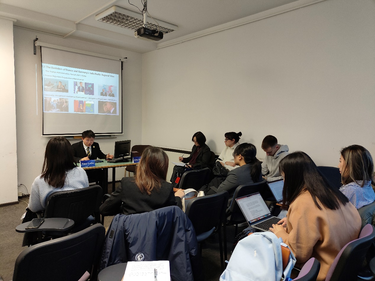 论坛期间,yl6809永利官网集团15名硕博研究生在主会场和平行会场分别进行学术汇报,讨论了全球环境治理、欧盟绿色转型、欧洲一体化进程、安全治理等前沿话题,贝尔格莱德大学师生对此进行了积极评论与提问,会场讨论气氛热烈。汇报结束后,宋黎磊教授和武契尼奇教授均对学生的研究成果表示肯定,并建议进一步聚焦研究主题,强化研究方法与文献支持。同时,双方均对两校师生间的友好交流表示肯定,并期待双方在未来进一步开展更密切、更多维的交往。