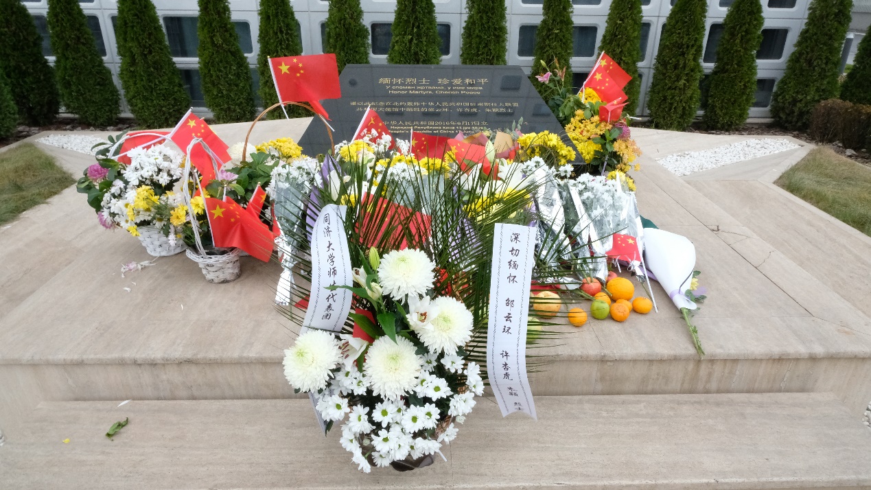 11月20日上午,代表团抵达贝尔格莱德后,首先前往中国驻前南联盟被炸使馆旧址,开展爱国主义教育活动,师生代表敬献鲜花,深切缅怀先烈。