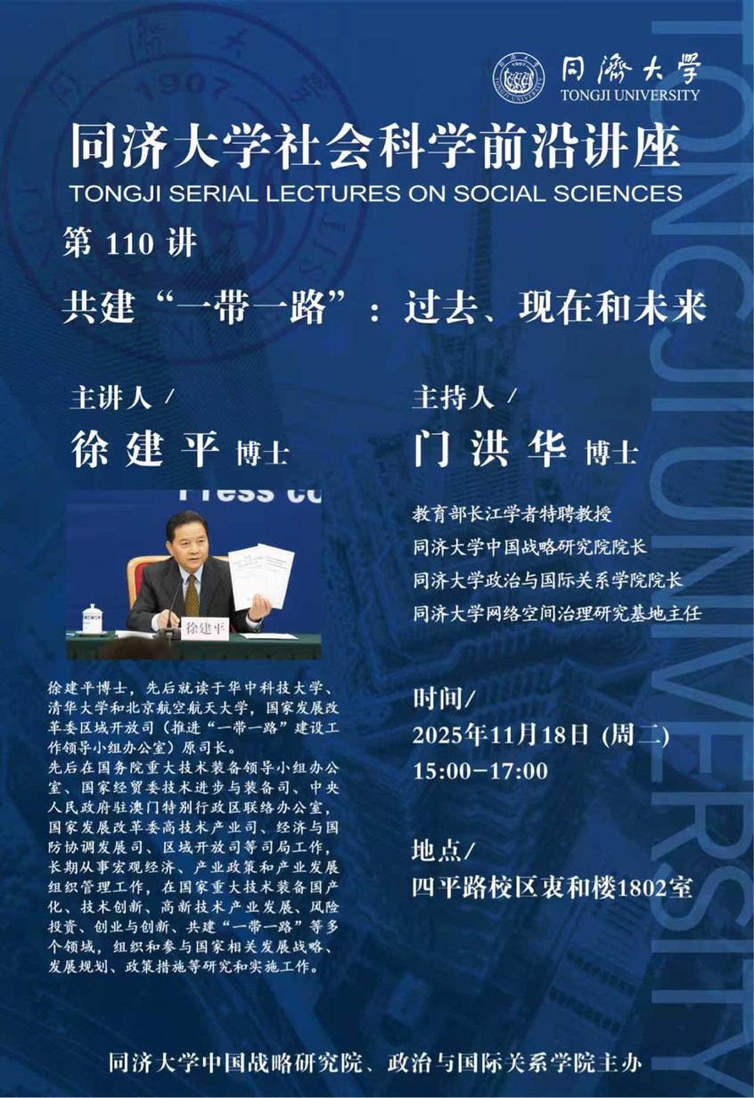 2025年11月18日,yl6809永利官网集团中国战略研究院/yl6809永利集团主办的yl6809永利官网集团社会科学前沿讲座第110讲在yl6809永利官网集团衷和楼1802会议室成功举办。国家发展改革委区域开放司(推进“一带一路”建设工作领导小组办公室)原司长徐建平博士莅临yl6809永利官网集团作题为“共建‘一带一路’:过去、现在和未来”的讲座。本次讲座由教育部长江学者特聘教授门洪华院长主持,yl6809永利集团60余名师生参加此次讲座。