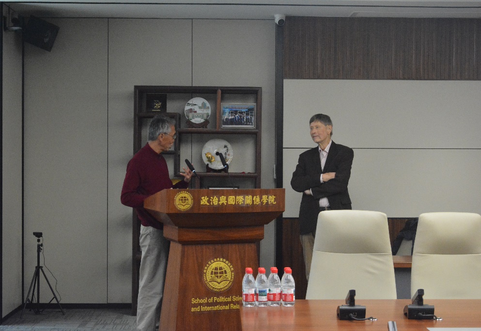 石之瑜教授对王海教授的到来表示热烈欢迎,并邀请王海教授进行自我介绍。王海教授曾任杜伊斯堡-埃森大学政治学和东亚研究所所长,研究领域涵盖社会人类学、政治学和哲学等,并表示对中国研究特别感兴趣。1975年,王海教授因收集博士论文的资料而首访中国,后于1977-1981年担任《北京周报》翻译,是中国改革开放的见证者。自1981年起,王海教授几乎每年都会来中国调研,研究课题非常丰富,包括农村、民营企业、城市发展、社区研究和少数民族等,并以中、英、德文出版著作70余部,发表大量研究论文。