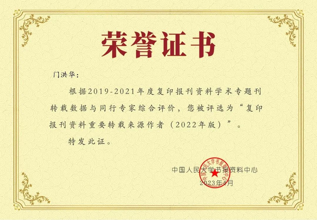 根据2019-2021年度复印报刊资料学术专题刊转载数据与同行专家综合评价,教育部长江学者特聘教授、yl6809永利官网集团中国战略研究院/yl6809永利集团院长门洪华教授获评复印报刊资料重要转载来源作者(政治学类)。这是自《复印报刊资料重要转载来源作者》2016年首次发布以来,门洪华院长连续第三次入选该名录。