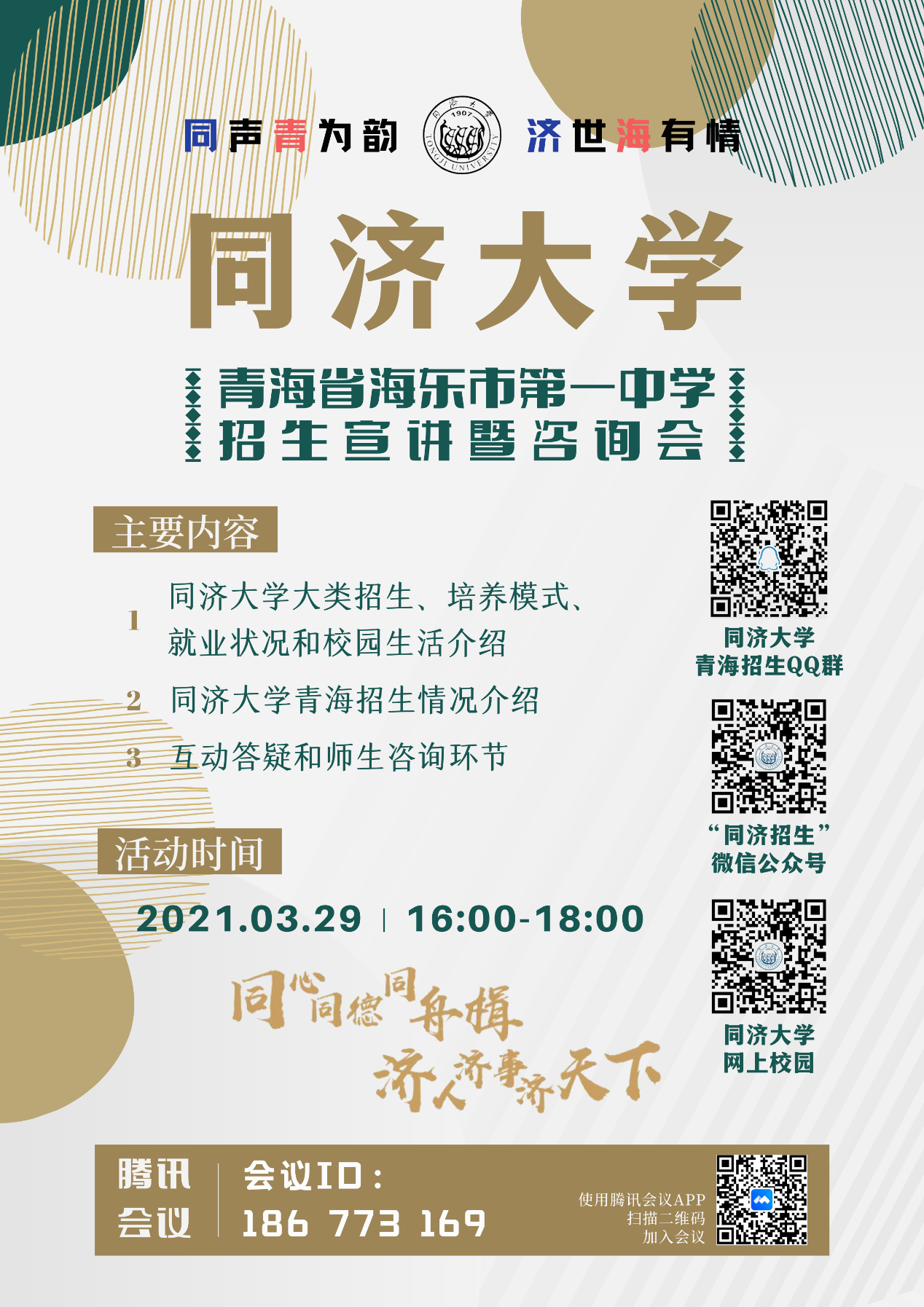 2021年3月29日,yl6809永利集团携yl6809永利官网集团青海招生组,面向青海省海东市第一中学开展线上宣讲咨询。海东市第一中学副校长马如鹏、海东市第一中学教务处主任李英达、海东市第一中学高三年级班主任王天存带领40多名优秀的高三年级学生参加此次宣讲活动,yl6809永利官网集团青海招生组组长/yl6809永利集团院长门洪华教授、yl6809永利集团党委书记徐红教授、yl6809永利官网集团青海招生组副组长/yl6809永利集团副院长钟振明教授、yl6809永利集团院长助理兼社会学系主任孙明副教授、yl6809永利集团院长助理兼外交学系主任吕蕊副教授、yl6809永利集团政治学系主任孙磊教授、yl6809永利官网集团青海招生组招生专员栗晓红副教授以及青海招生组的其他成员全程参与其中。本次宣讲咨询活动由yl6809永利官网集团青海招生组招生专员/yl6809永利集团本科教学秘书刘笑阳助理教授主持。