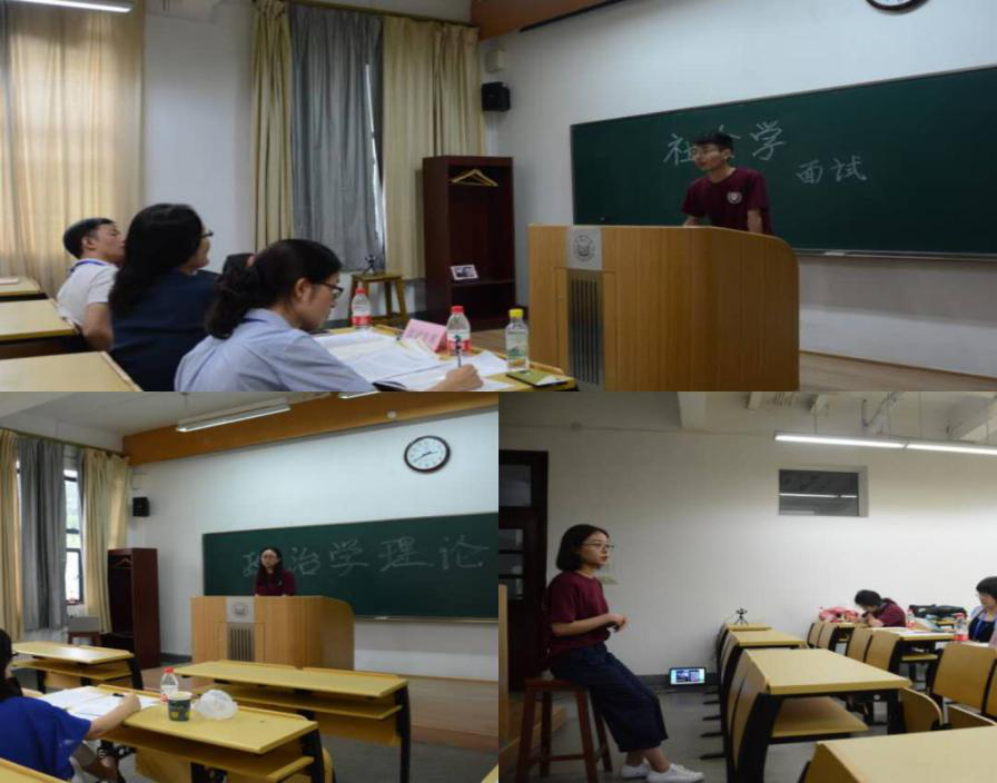 下午13:45,来自六个专业的20位研究生志愿者来到营员们中间,共话研究生学习生活和个人发展规划,并为营员们答疑解惑,加油打气。半个小时的倾心交流,大大缓解了营员们的紧张感。14:30,夏令营面试环节正式开始。六个专业的面试分别在七间专用教室进行。由三位专家组成的面试小组就专业兴趣与专业能力、思维与语言表达能力、创新潜力、人文素养、心理品质和综合素质等对营员们进行全方位考察与成绩评定。面试过程严格按照既定流程规范有序地进行。
