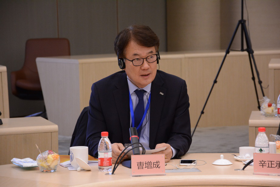 门院长在总结发言中指出,此次论坛虽然短暂,但双方讨论热烈,取得了丰硕的成果。他以五句话为此次“上海—釜山学术论坛”作总结。一是“上天入地,天地一体”。他相信,阳光之下无事不可为。此次会议在坦诚的气氛中交流了涵盖各个领域的诸多问题。从国际关系到城市治理,既大开大合、也视野丰富,议程开放、视角多元,为中韩关系进一步发展进行了预热。二是“经贸搭桥,人文聚焦”。中韩从2008年建立战略伙伴关系至今有了很大发展,但是在论坛的讨论中我们仍然可以感受到萨德问题的危险,双方都认识到了外交安全合作的重要性,但是双方也存在苦涩的记忆。中韩如何深化双边认知,加强人文交流,尤其在微观、具体的领域加深理解、达成共识变得更加重要。三是“上海釜山,大有可为”。新时代不仅仅源于中国的发展,更源于世界的改变。中共十九大所提出的“三个发展阶段”将给世界带来很大的影响。在此阶段如何看待中国的未来、中国与世界的关系,是一个重大议题。从这一高度看待上海—釜山的合作将更有价值。四是“专业交叉,共襄盛举”。本次论坛议程涉及政治、经济、贸易、社会、国际关系等各个领域。正如辛大使所提到的,学者、前政府官员、企业家的参与使得本次论坛独具特色,这种特色让我们的论坛更具强烈的可持续性,期待明年的探讨更加丰富和精彩。五是“感谢参与,感谢付出”。门院长对东西大学副校长曹增成与所有韩方嘉宾的莅临表达感谢,期待双方继续合作;对与会的中国专家和企业家、对yl6809永利集团的师生表示由衷的感谢。