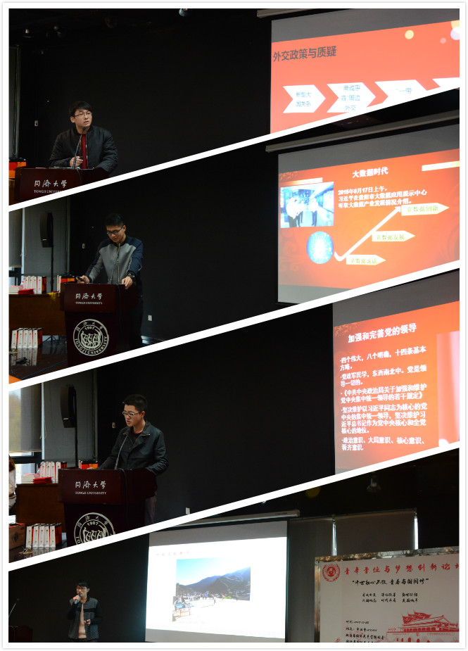 十九大召开后,我院团委通过多种形式组织本研学生进行专题学习和主题教育活动,此次“青年责任与梦想论坛”正是学生阶段性学习成果的一次集中展示。本届论坛以“济世初心不改,青春与国同修”为题,由“主题分享会”与“同梦人,济世心”论文比赛颁奖典礼两部分构成。参与师生紧密围绕十九大、结合专业,通过“习式外交,大国风范”、“深化改革,时代布局”和“盛世征程,美丽城市”三个维度予以展开。