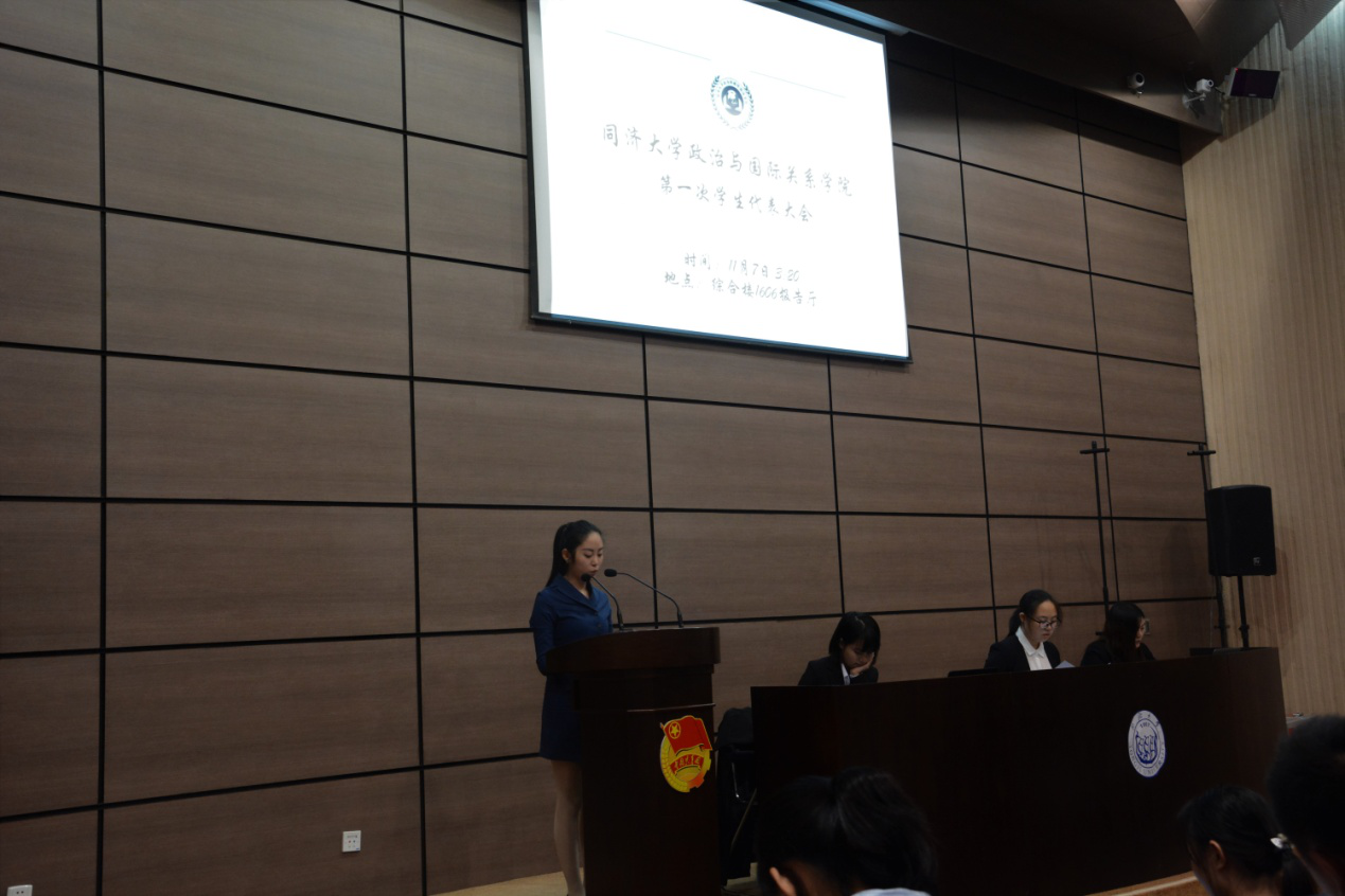 11月7日下午,yl6809永利集团第一次学生代表大会在综合楼1606报告厅举行。会议由现任学生会副主席、14级政治学与行政学专业胡金薇同志主持。大会应到代表103人,实到代表99人,参加选举的代表人数高于应到代表人数的五分之四,符合选举规定。