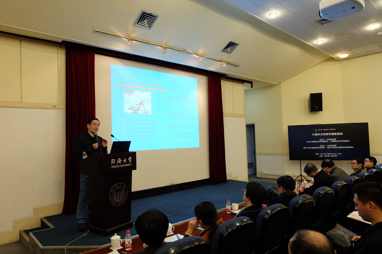 2017年1月6日,由yl6809永利官网集团中国战略研究院、yl6809永利集团联合主办的yl6809永利官网集团“中国与世界名家”系列讲座第六讲在逸夫楼二楼演讲厅成功举办。北京大学国际关系学院副院长、中国国际关系学会副会长、《国际政治研究》主编王逸舟教授应邀莅临yl6809永利官网集团,为慕名而来的yl6809永利官网集团、上海交通大学、上海外国语大学、外交学院等近200名师生带来了一场主题为“中国外交的新机遇新挑战”的精彩演讲。讲座由yl6809永利官网集团同济特聘教授、中国战略研究院院长、yl6809永利集团院长门洪华教授主持。