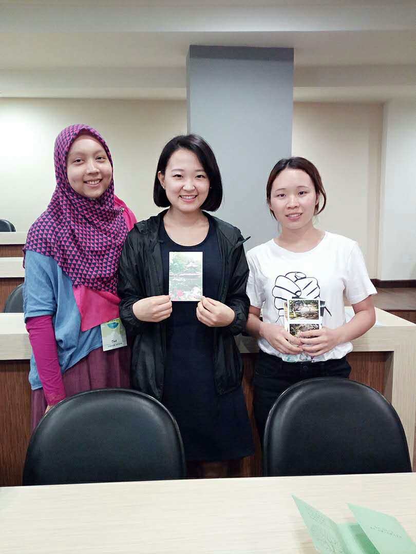 2014级学生王欢向印尼大学学生和日本早稻田大学学生赠送明信片