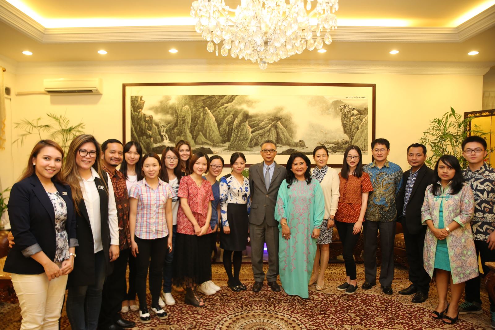 此次暑期班的一个亮点是全体同济学员参访了中国驻东盟使团,徐步大使和来自使团交流合作处、政治处、新闻与公共外交处的驻外人员与学生进行了座谈。受徐步大使邀请,学生在座谈会后赴大使官邸参加了工作晚餐,并与同时受邀的伦敦公共关系学院(雅加达)院长一行6人进行了交流。徐步大使对于同济学子选择到访印尼这样的发展中国家表示赞许和热烈的欢迎,对同济学子表现出来的朝气蓬勃的面貌,不怕吃苦、不抱怨的精神状态进行了表扬。他和学生分享了从事外交工作需要具备的几点主要特质,包括要拥有对外交往的激情;善于沟通和公关;敏锐,善于捕捉新的动向,并能有自己的感受和体会;不怕吃苦,敢于去发展中国家和欠发达国家、地区。有学生问及外交工作可能会遇到的困难,徐步大使言辞恳切又坚定,“外交事业是把个人志向和理想与国家结合在一起,必须坚守六个字:忠诚、使命、奉献”。徐步大使还依次询问了学生的专业学习和职业规划,并介绍了印尼的国家概况,印尼的华人和中资企业情况以及中国与东盟的现状和发展潜力。2016年是中国与东盟建立对话关系二十五周年,也是中国-印尼副总理级人文交流机制开启的第二年,徐步大使寄语在场的同济学子成为未来东南亚外交工作的主力军。