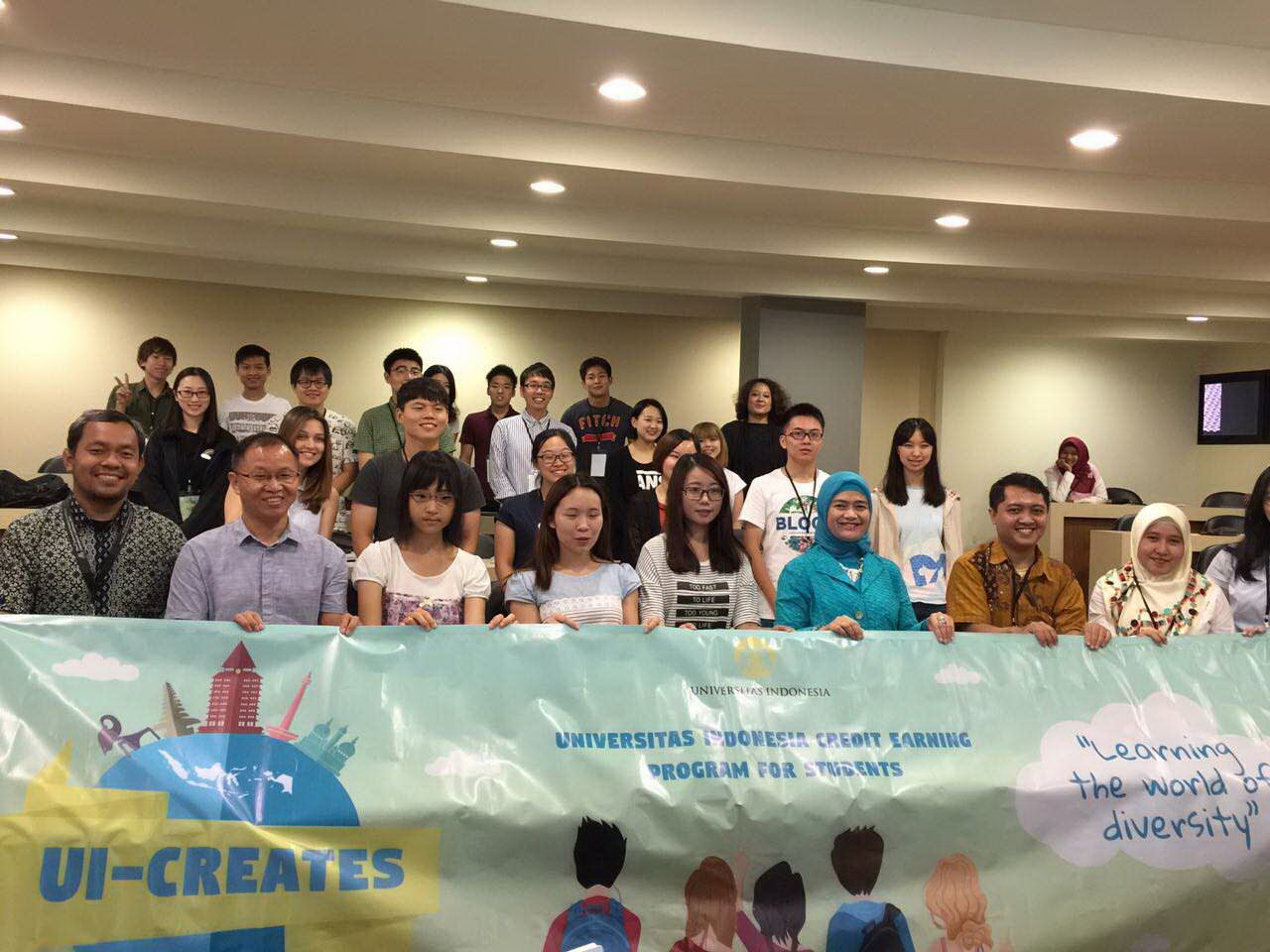 暑期班已经告一段落,好几位学生用“回到现实”来形容回到上海的感受。又是一个新的学期,大三的学生升入大四,准备保研或者参加工作前的实习;大二的学生升入大三,将面对专业课最为密集的一个学年。但是显然,这半个月的海外经历让同学们在面对现实的时候,又多了一份情怀和追求。如果青春是一种不怕吃苦的精神,那两周的时间里,我们常常被它浸染着。由于印尼大学的depok校区远在郊区,吃饭不便,我们常常晚上吃方便面或者等外卖;附近难以找到水果店,每天我们喝一杯7000印尼卢比(相当于人民币3元)的果汁来替代;感冒发烧的时候,印尼大学的小伙伴每天早晚来量体温,又是送药又是安慰,生病也是暖暖的;雅加达堵起车来常常要几个小时,实习的那些天我们早出晚归,堵车的时候我们补觉或者一起唱歌。如果青春是一种情谊,那两周的时间里,我们常常被感动着。我们用对方国家的语言打招呼、唱歌、共舞;我们同包着头巾的穆斯林姑娘一起从绿峡谷的悬崖上跳水,在漂流的时候,日本早稻田大学的一位同学一直拽着不会游泳的我的手;一次在商场的餐厅里吃饭,印尼大学的同学们舍不得点餐,最后我们说菜点多了叫他们一起来吃;离开印尼的前晚,开着玩笑说你们要起来送我们,结果才睡了4个小时的日本和韩国小伙伴齐刷刷一早出现,向我们挥手道别。带着这样的精神和情谊,我们希望可以走得更远,曾经共抒生平,共赴光景, 那些馈赠的片语,让追寻更有意义,如同一首歌中唱的,“负群山,涵浩海,笃行......相期努力,荣光不难再续”。