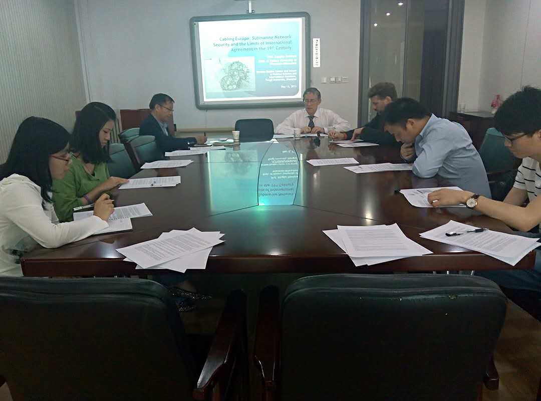 2016年5月12日下午,yl6809永利集团与yl6809永利官网集团德国研究中心共同邀请威斯康辛大学历史系Douglas Howland教授,在yl6809永利官网集团综合楼1402室发表主题为“联通欧洲:十九世纪的海底电报线路安全和国际协议的局限性”(“Cabling Europe: Submarine Network Security and the Limits of International Agreement in the 19th Century”)的讲座。讲座由yl6809永利官网集团德国研究中心梅飞虎(Maximilian Mayer)教授和yl6809永利集团王传兴教授共同主持。