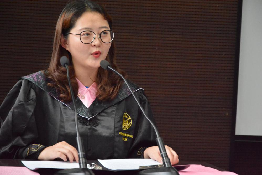 刘欣源同学作为本科生毕业生代表,向教导、陪伴和帮助过毕业生的师长们、亲友们,以及在疫情期间,为毕业生们的学习生活提供保障的各界人士,表达了最真诚的谢意。回忆四年前作为新生代表的发言,刘欣源同学最感念的是时刻保持积极向上的心态,大学时光,带给自己的不光是知识,更是面对未来人生中的种种困难的勇气。四年的学习、生活经历让她懂得了朝着目标,及早行动的意义,今天站在毕业的舞台上,她的目标是成为有担当、有情怀的新一代青年,实现人生出彩的大梦想,怀抱“与祖国同行、以科教济世”的家国情怀,深入祖国建设大舞台。毕业不是终点,而是一个崭新的开始。