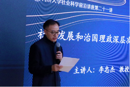 2019年11月26日,由yl6809永利官网集团中国战略研究院、yl6809永利集团主办的yl6809永利官网集团社会科学前沿讲座21讲在yl6809永利官网集团四平校区汇文楼518室成功举办。本次讲座特别邀请原中共中央党史研究室副主任、现任中央马克思主义研究和建设工程咨询委员会委员、中国党史学会副会长李忠杰教授为同济师生做题为“社会发展和治国理政深层次规律解析”的主题演讲。