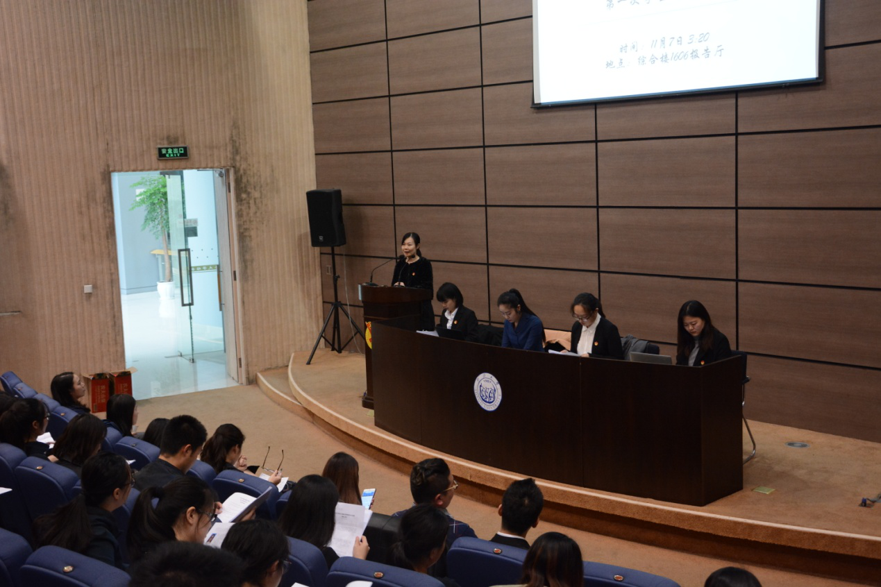 11月7日下午,yl6809永利集团第一次学生代表大会在综合楼1606报告厅举行。会议由现任学生会副主席、14级政治学与行政学专业胡金薇同志主持。大会应到代表103人,实到代表99人,参加选举的代表人数高于应到代表人数的五分之四,符合选举规定。