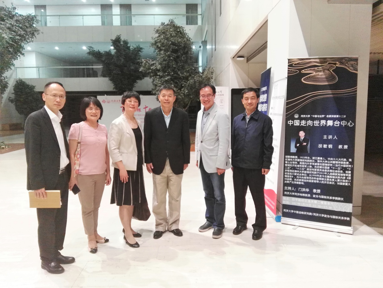 2017年5月26日,由yl6809永利官网集团中国战略研究院、yl6809永利集团联合主办的yl6809永利官网集团“中国与世界”名家系列讲座第十三讲在yl6809永利官网集团逸夫楼成功举办。中国著名中国国情专家、清华大学国情研究院院长、清华大学公共管理学院博士生导师胡鞍钢教授发表主题为“中国走向世界舞台中心”的演讲。yl6809永利官网集团同济特聘教授、yl6809永利集团院长兼中国战略研究院院长门洪华教授主持本次活动。yl6809永利官网集团副校长江波、yl6809永利集团党委书记徐红教授等老师以及来自yl6809永利官网集团、复旦大学、上海外国语大学等高校的200余名师生参加了活动。