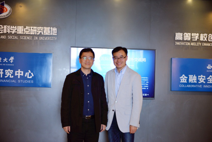 应教育部哲学社会科学重点基地、西南财经大学中国金融研究中心主任王擎教授的邀请,yl6809永利官网集团特聘教授、中国战略研究院院长门洪华2016年4月22日访问该中心,并就yl6809永利官网集团中国战略研究院与西南财经大学金融安全协同创新中心的合作进行了深入交谈。期间,门洪华教授为西南财经大学中国金融研究中心举行了“中国外交战略”的主题演讲,王擎教授主持演讲会,60余名西南财经大学师生参加。