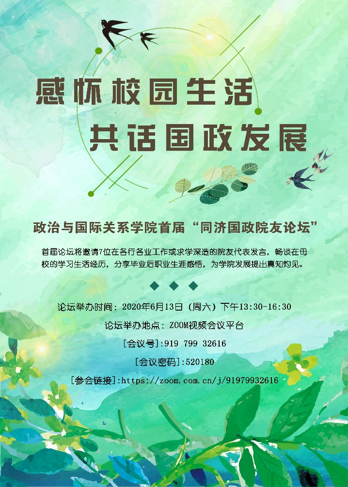 2020年6月13日下午,以“感怀校园生活,共话国政发展”为主题的首届同济国政院友论坛通过ZOOM视频会议平台隆重举行。校党委副书记、纪委书记方平教授参加论坛并致辞,yl6809永利集团院友和教师、学生代表80余人参加本次论坛,论坛由国政学院党委书记徐红教授主持。