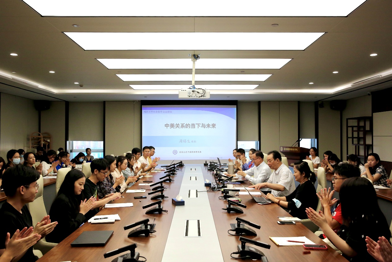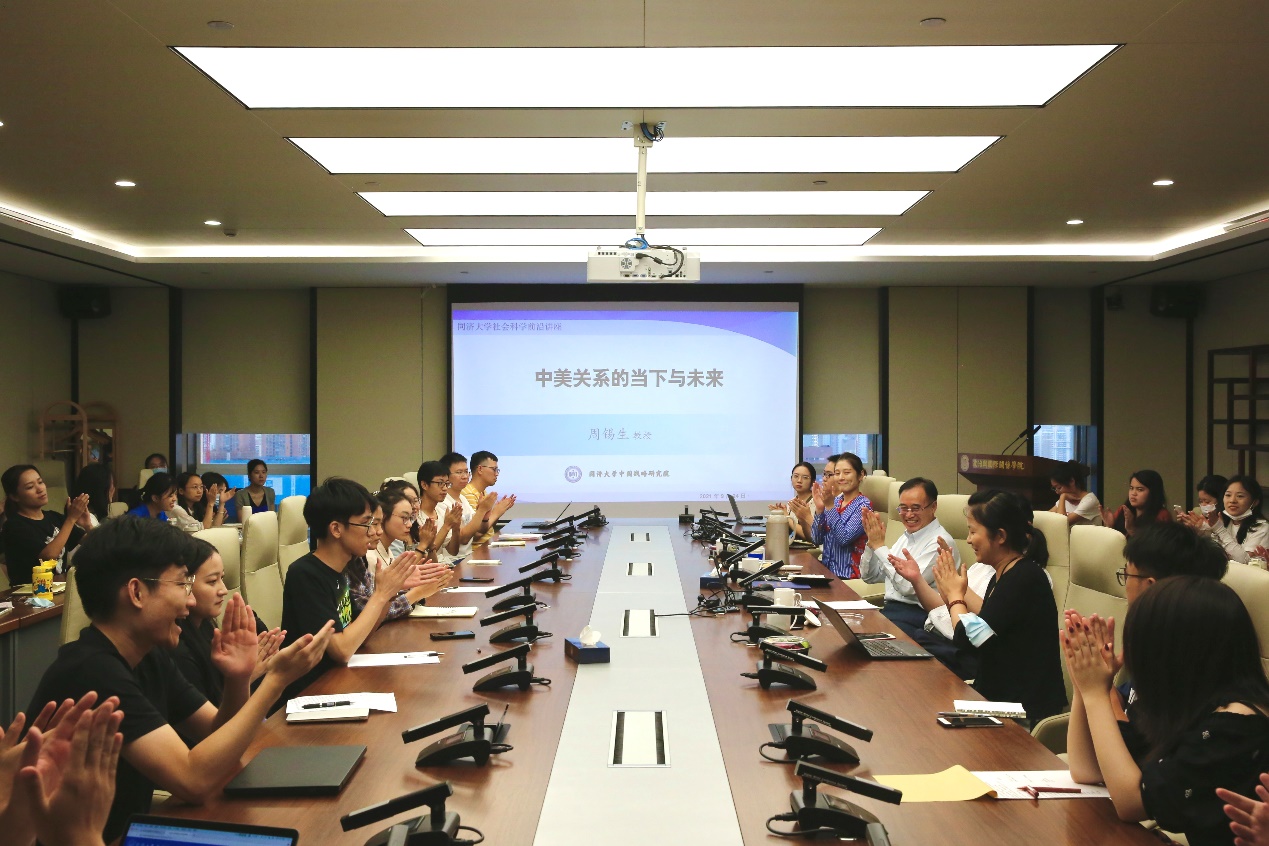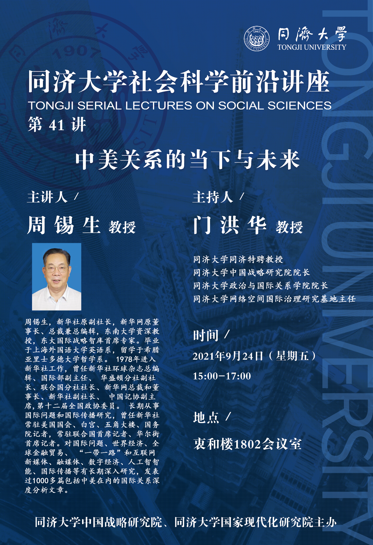 2021年9月24日,由yl6809永利官网集团中国战略研究院、yl6809永利官网集团国家现代化研究院主办的yl6809永利官网集团社会科学前沿讲座第41讲在yl6809永利官网集团衷和楼1802会议室成功举办。本次讲座邀请新华社原副社长、东南大学资深教授周锡生同志作题为“中美关系的当下与未来”的主题演讲。讲座由yl6809永利官网集团中国战略研究院院长、yl6809永利集团院长门洪华教授主持,yl6809永利集团教师、博士生、硕士生60余人次参加了此次讲座。