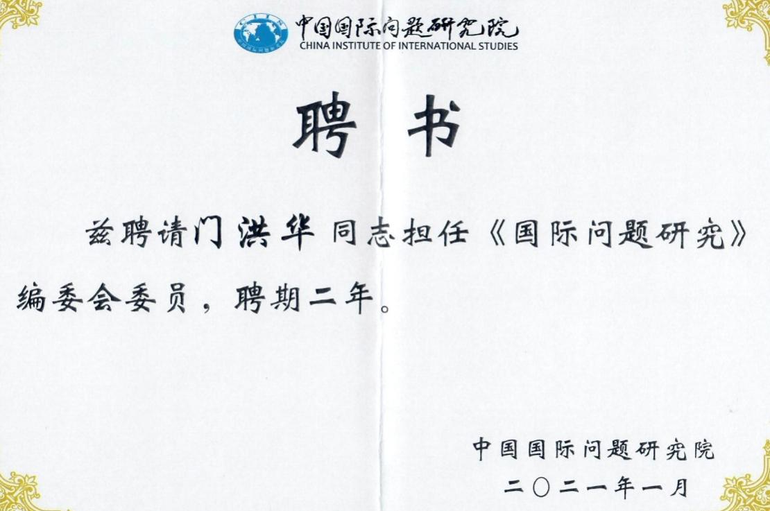 Professor Men Honghua is appointed to the editorial board of China International Studies