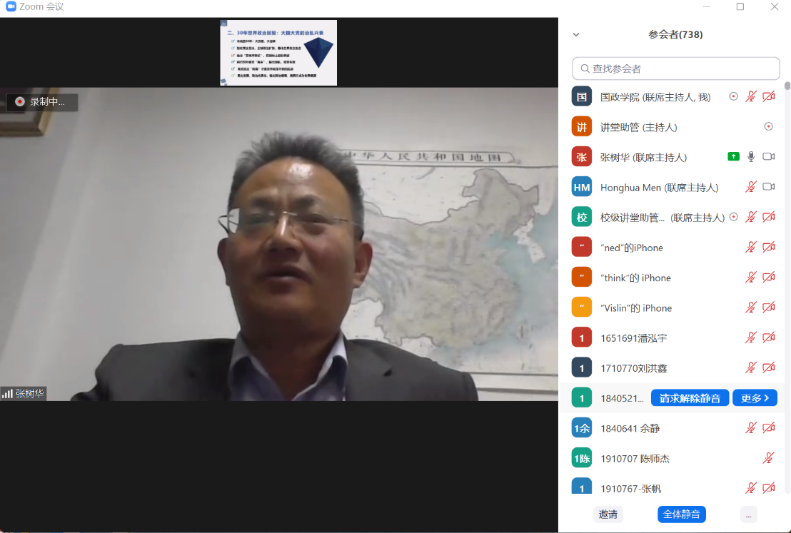 Prof. Zhang’s lecture was composed of four parts: "political dynamics in today’s changing world", "30 years of world politics in retrospect: the rise and fall of major powers and parties", "reflections on and criticism of American democracy", and "Chinese governance in the perspective of world politics".