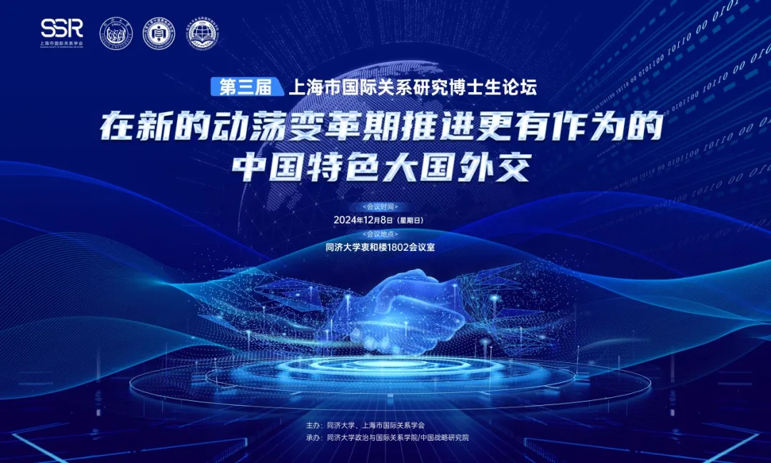 The 3rd Shanghai Doctoral Students Forum on International Relations was successfully held on December 8, 2024. The forum, themed "Promoting More Effective Major Country Diplomacy with Chinese Characteristics in the New Period of Turbulence and Transformation", was jointly hosted by Tongji University and the Shanghai Association of International Relations, and organized by the School of Politics and International Relations/Institute of China's Strategic Studies at Tongji University. It was successfully held in Conference Room 1802 of Zhonghe Building at Tongji University.