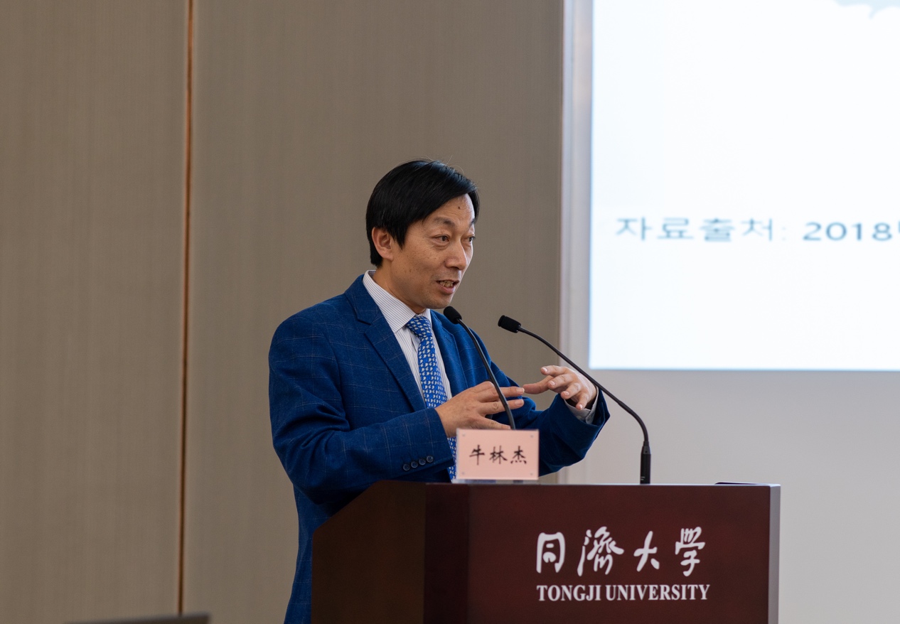 Co-hosted by the Institute for China & World Studies of Tongji University and the Center for Chinese Studies of Dongseo University (DSU), the 4th Shanghai-Busan Cooperation Forum was successfully held in Tongji on November 4, 2019. The forum brought together more than 20 domestic representatives from the Chinese Academy of Social Sciences (CASS), Fudan University, Nankai University, Tongji University, Shandong University, Communication University of China (CUC), Shanghai Normal University, and Shanghai Academy of Social Sciences (SASS), as well as more than 20 South Korean representatives from the Presidential Committee on Northern Economic Cooperation (PCNEC), Dongseo University, Korea Maritime Institute (KMI), Korea Maritime & Ocean University (KMOU), Korea JoongAng Daily, Pusan National University, Pukyong National University, and Busan Economic Promotion Agency. Jiang Bo, Vice President of Tongji University, Ning Fukui, former Chinese Ambassador to South Korea, Shin Jung-seung, former Ambassador of South Korea to China and Director of the Center for Chinese Studies of DSU, and Choi Young-sam, Consul-General of the Consulate General of the ROK in Shanghai, attended the forum. Consul-General Choi delivered an ebullient speech at a banquet hosted by the Consulate General of the ROK in Shanghai for the participants from China and South Korea on the evening of November 3.