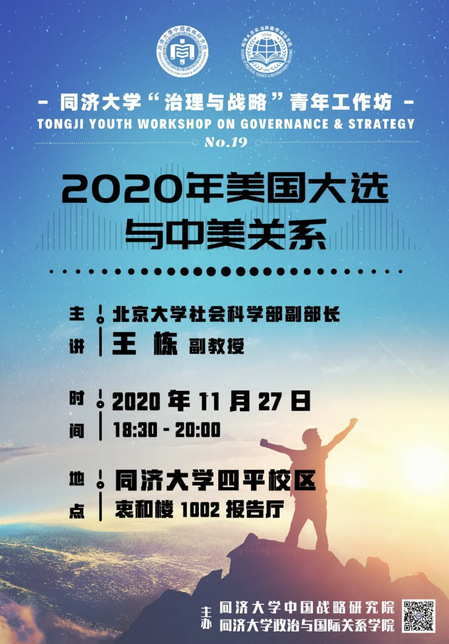 Hosted by the Institute for China & World Studies and the School of Political Science & International Relations (SPSIR) of Tongji University, the Tongji Youth Workshop on Governance & Strategy No.19 was successfully held in the lecture hall on the 10th floor of Zhonghe Building, Siping campus on November 27, 2020. Associate Professor Wang Dong, Deputy Director of the Office for Humanities and Social Sciences and Executive Director of the Institute for Global Cooperation and Understanding (iGCU), Peking University, was invited to share his personal research findings with more than 50 Tongji teachers and students around the theme of “US Election 2020 and China-US Relations”, and exchanged ideas with the young teachers and graduate students attending the workshop. This workshop was moderated by Associate Professor Zhong Zhenming, Associate Dean and Head of the Department of International Relations of SPSIR.