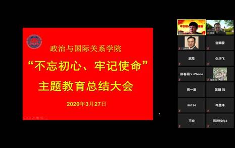 More than 50 participants including the Party and administrative team members, the Party Committee and the Disciplinary Committee, as well as all faculty Party members and representatives of student Party members of SPSIR attended this video conference. The education campaign on the theme of “staying true to our original aspiration and founding mission” was a great success.