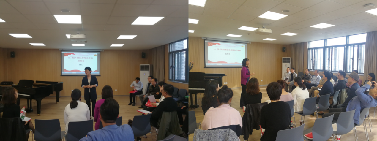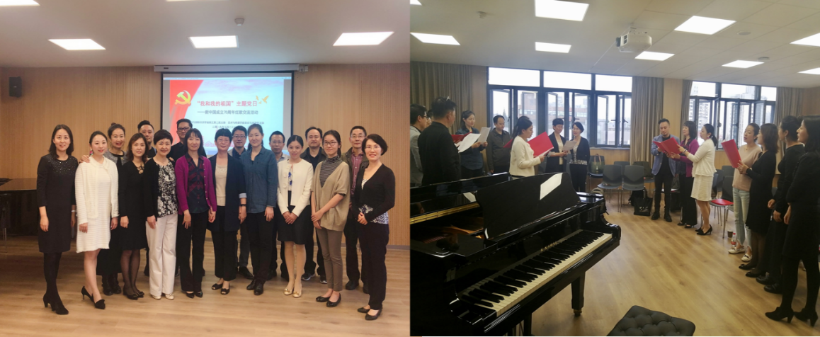To celebrate the 70th anniversary of the founding of the People's Republic of China, further enhance Party members' love for the Party and the country, and enrich the form of education campaign on the theme of "staying true to our original aspiration and founding mission", the second Party branch of the faculty of the School of Political Science & International Relations (SPSIR), Tongji University and the Party branch of the Music & Performance Department of the College of Arts & Media (CAM), Tongji University jointly held the "Me and My Motherland" Theme Party Day – Singing Patriotic Songs in Celebration of the 70th Anniversary of the Founding of the People's Republic of China in classroom 625, the third teaching building of the south campus on October 22, 2019. This event was designed to give the most sincere and best wishes to our motherland with songs. Xu Hong, Secretary of the Party Committee of SPSIR, and Zhang Yanli, Secretary of the Party Committee of the College of Arts & Media, attended the event and sang patriotic songs.